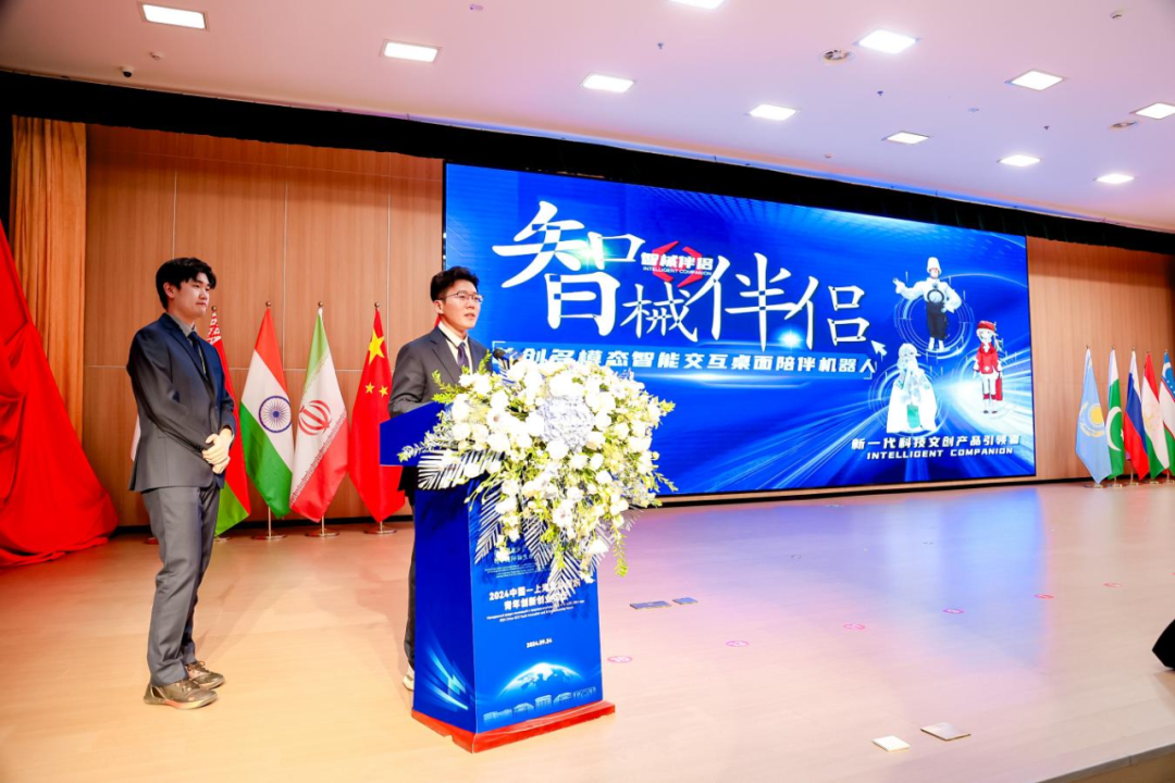 上海对外经贸大学硕士生黄斌和哈尔滨工业大学博士生孙翔宇联合创业项目“智械伴侣——首创多模态智能交互桌面机器人”还在论坛上做了路演展示。