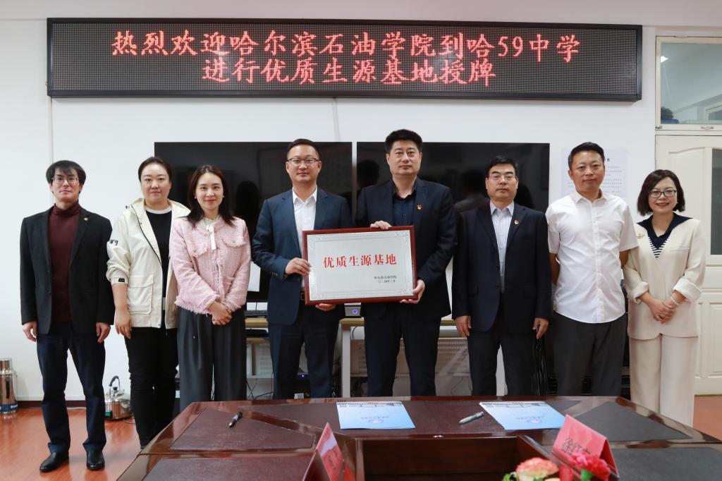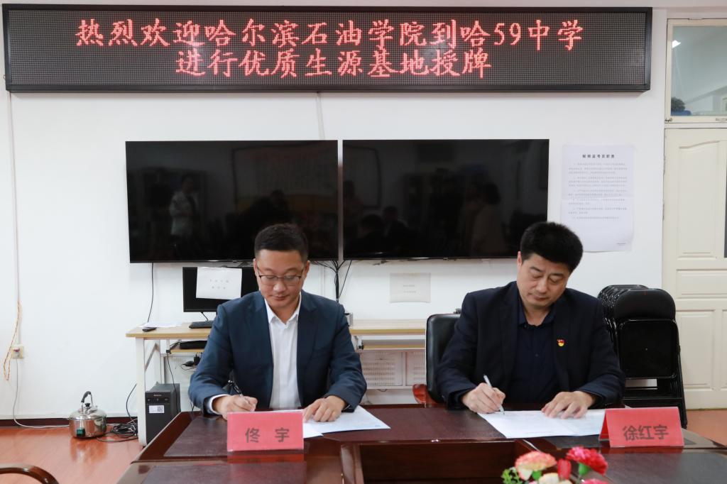 随后,学校与哈尔滨市第五十九中学签署优质生源基地建设协议,并举行授牌仪式。