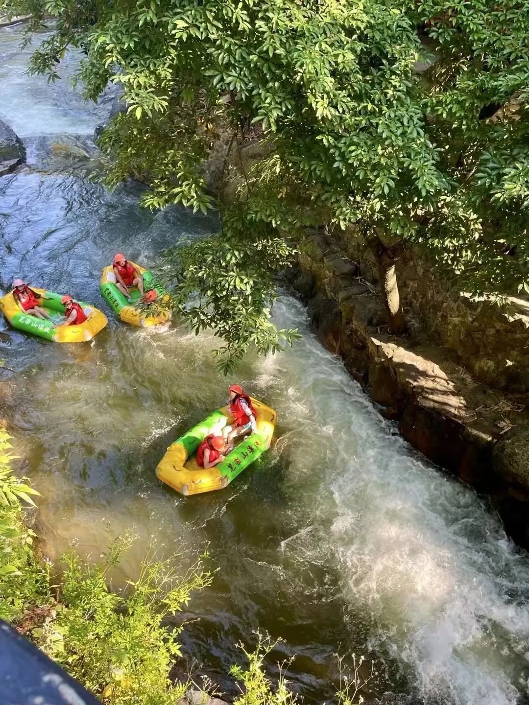 山上有超多游乐设施,像飞天绳索、秋千、滑索等等,还能漂流,有滑道可以滑下山。园区内还有