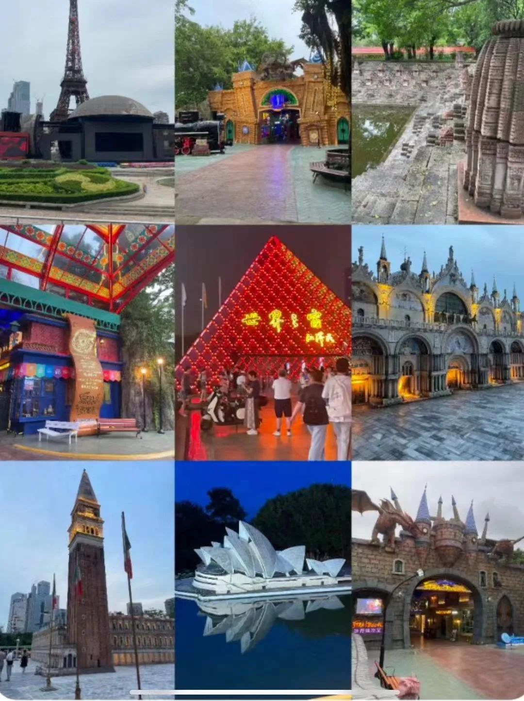 这是一个汇集世界各地著名景点微缩景观的主题公园。有极速富士山、空中花园、追梦乐园等免费