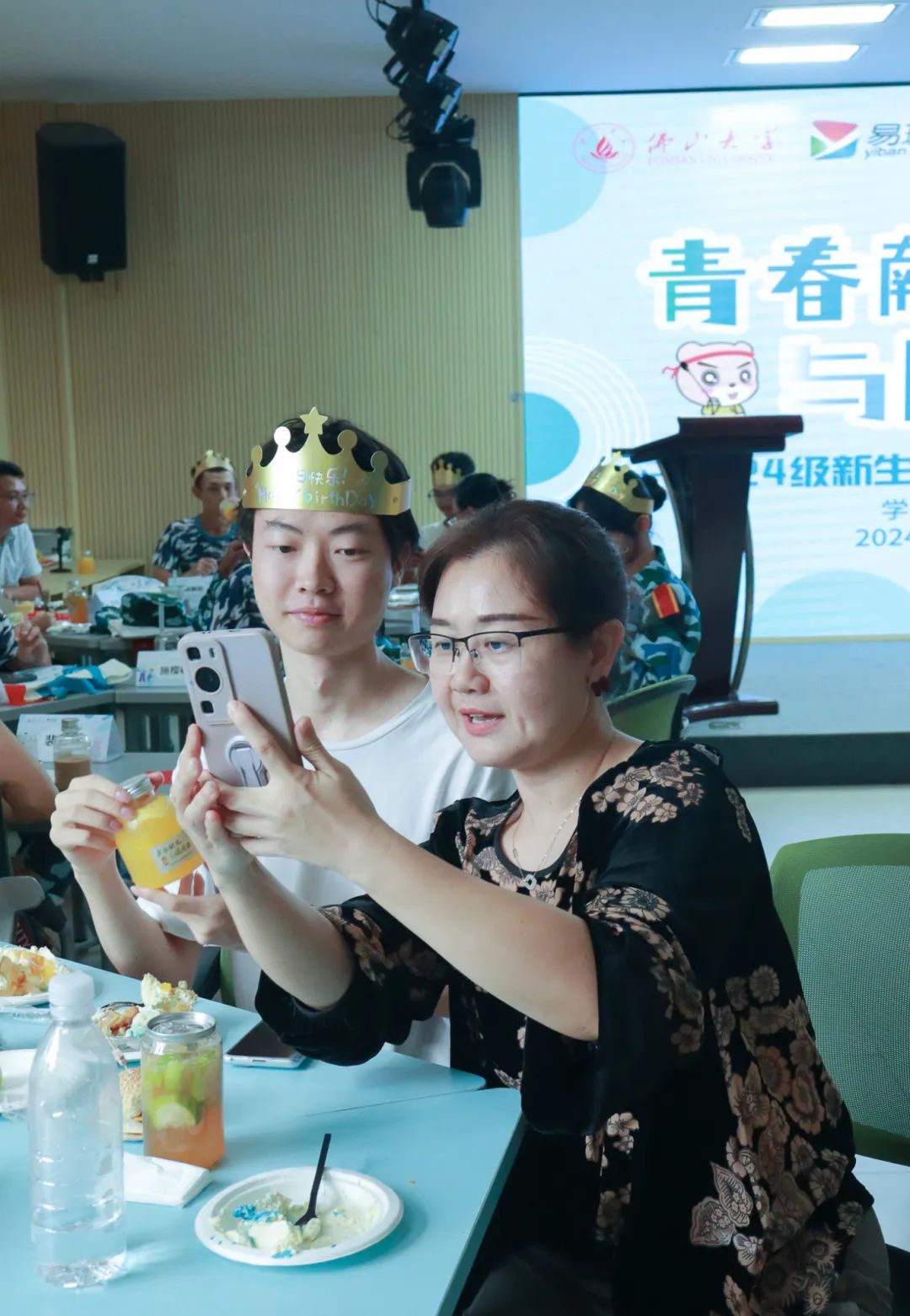 在这温馨愉快的氛围下,伴随着悠扬而温馨的《生日快乐歌》旋律,老师与同学们沉浸在真挚的交流中,畅谈学习生活点滴,共绘大学生涯的宏伟蓝图。