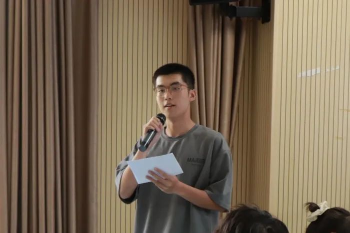 数学学院(研究生) 高歌发言的新生代表就入学以来及军训期间的所感所悟进行分享,并畅谈对大学及研究生生涯的憧憬与期待。同学们纷纷表示,自入读