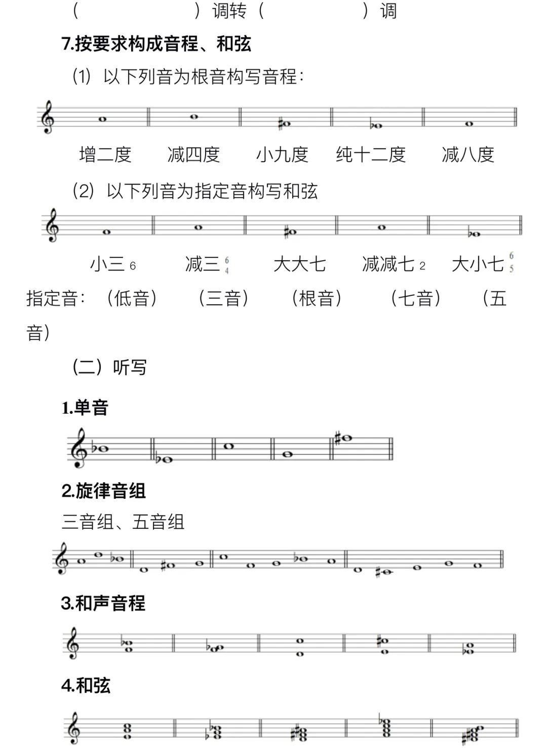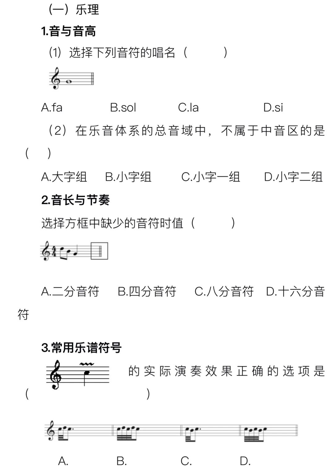 3.考试形式:采取笔试方式,使用五线谱记谱,提供标准音a1参照。