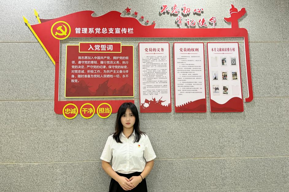 在进入大学时,家庭经济困难的她接受到国家助学金、学校新生专项、勤工俭学等一系列资助,她认识到个人的成长与进步离不开党的领导和国家的栽培。因此在大一时,她便递交了入党申请书,积极向党组织靠拢,积极参加青马班