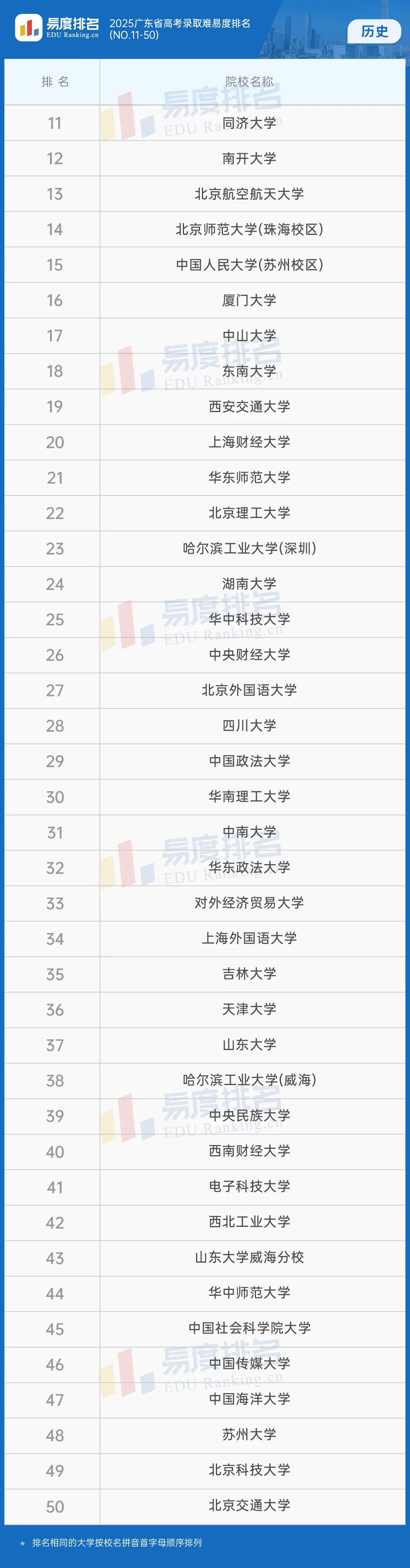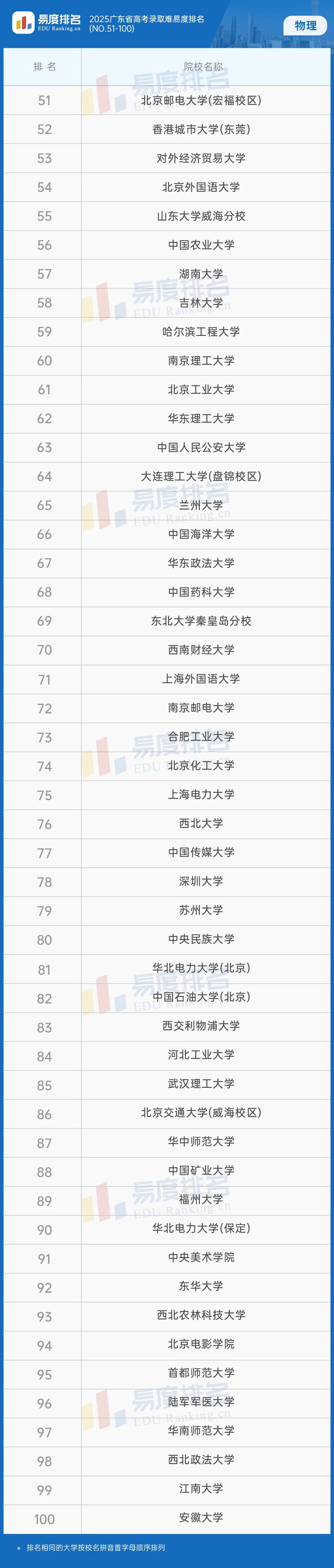 本期将公布“2025广东省高考录取难易度排名”前100位。