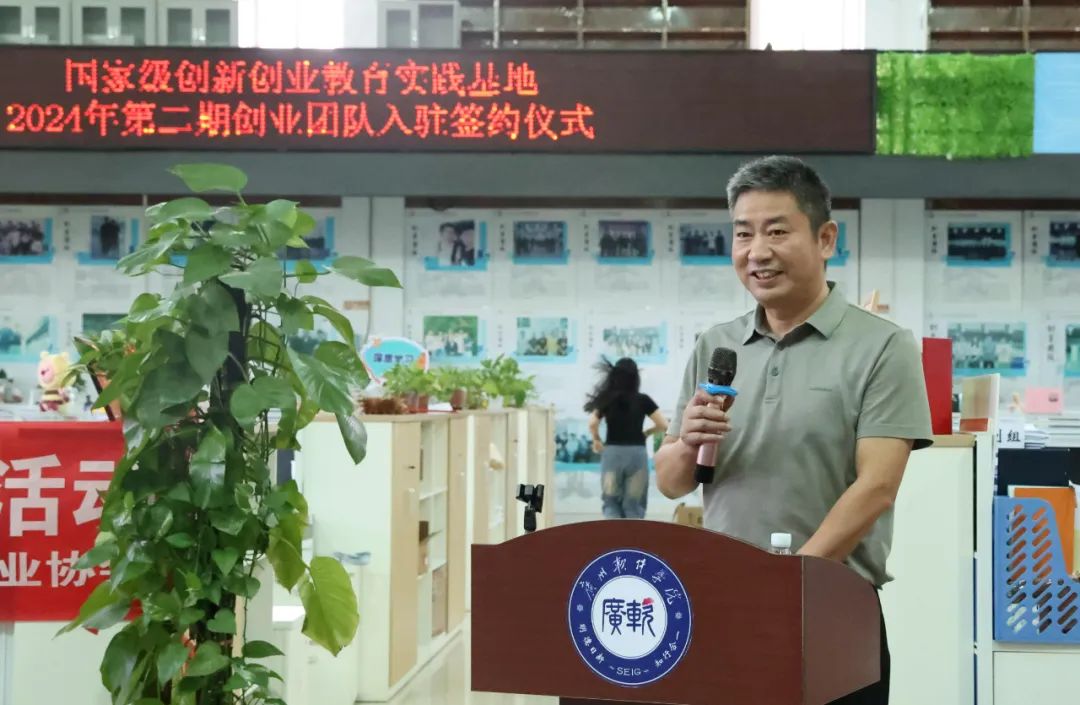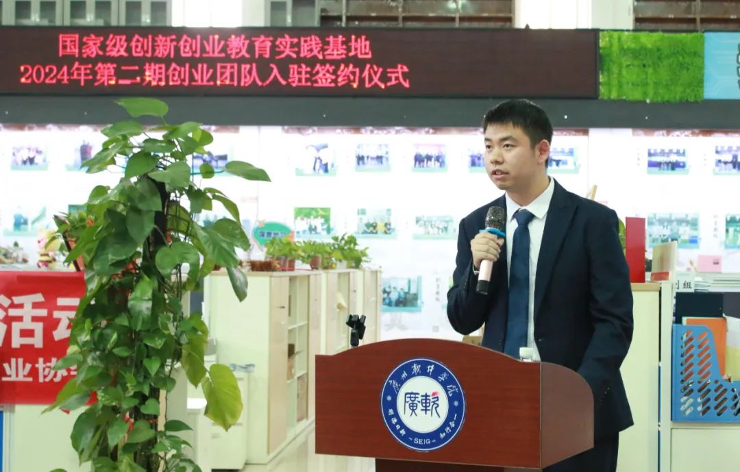 签约仪式现场袁志为签约仪式致辞。他表示,今年我校在中国国际大学生创新大赛中斩获国银一项、省银四项、省铜六项,成绩相比往年大幅提升,这是我校深化创新创业教育改革的显著成果。他提出新入驻创业团队应立足国家社会的发展需要,积极利用好平台资源,在完善项目过程中实现个人的全面发展。