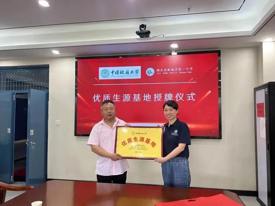 林小艳充分肯定了麻城一中的办学质量,对合作前景充满信心,希望通过设立“优质生源基地”的方式,加强两校的联系和宣传,携手培育更多优秀人才。随后,双方代表签订协议,并举行了授牌仪式。