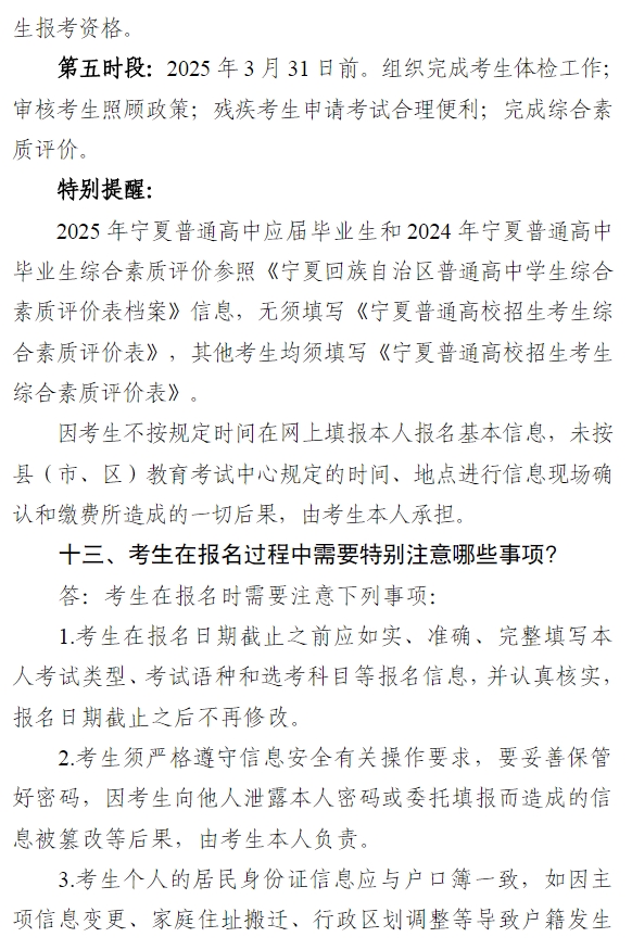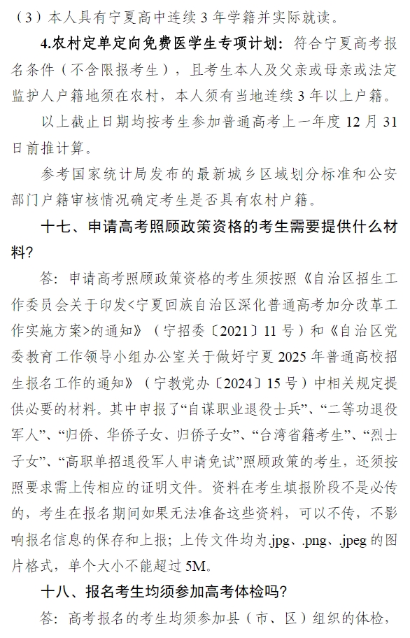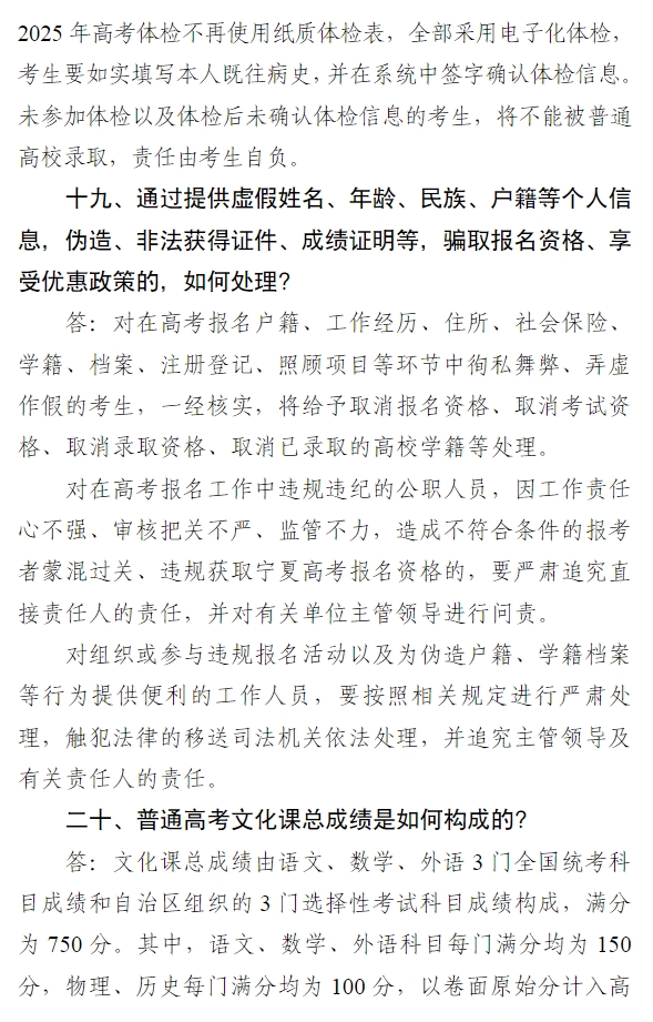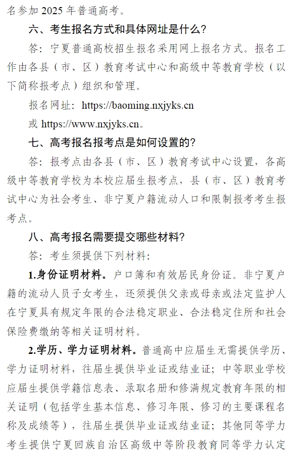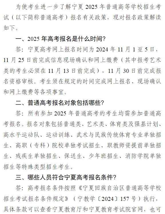 宁夏2025年普通高等学校招生报名政策解读(20问)
