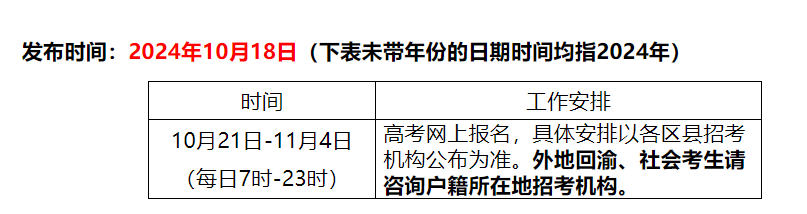 为方便我市2025年普通高考考生及家长知晓有关工作日程安排,我院将在本页面适时更新、陆续发布普通高考工作时间节点,请考生和家长持续关注。如有疑问请咨询报名所在地区县招生考试机构或市教育考试院信访咨询电话023-67869200。