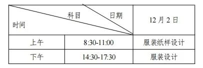 考试所需绘画工具、剪裁工具等自备。服装工艺考试具体时间和详细地点安排由考点另行公布。服装纸样设计、服装设计考试时间统一安排如下: