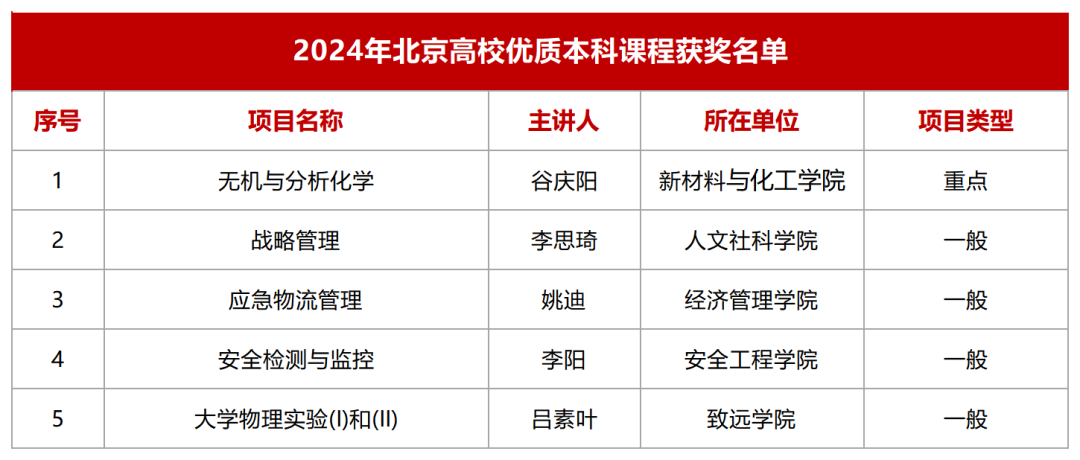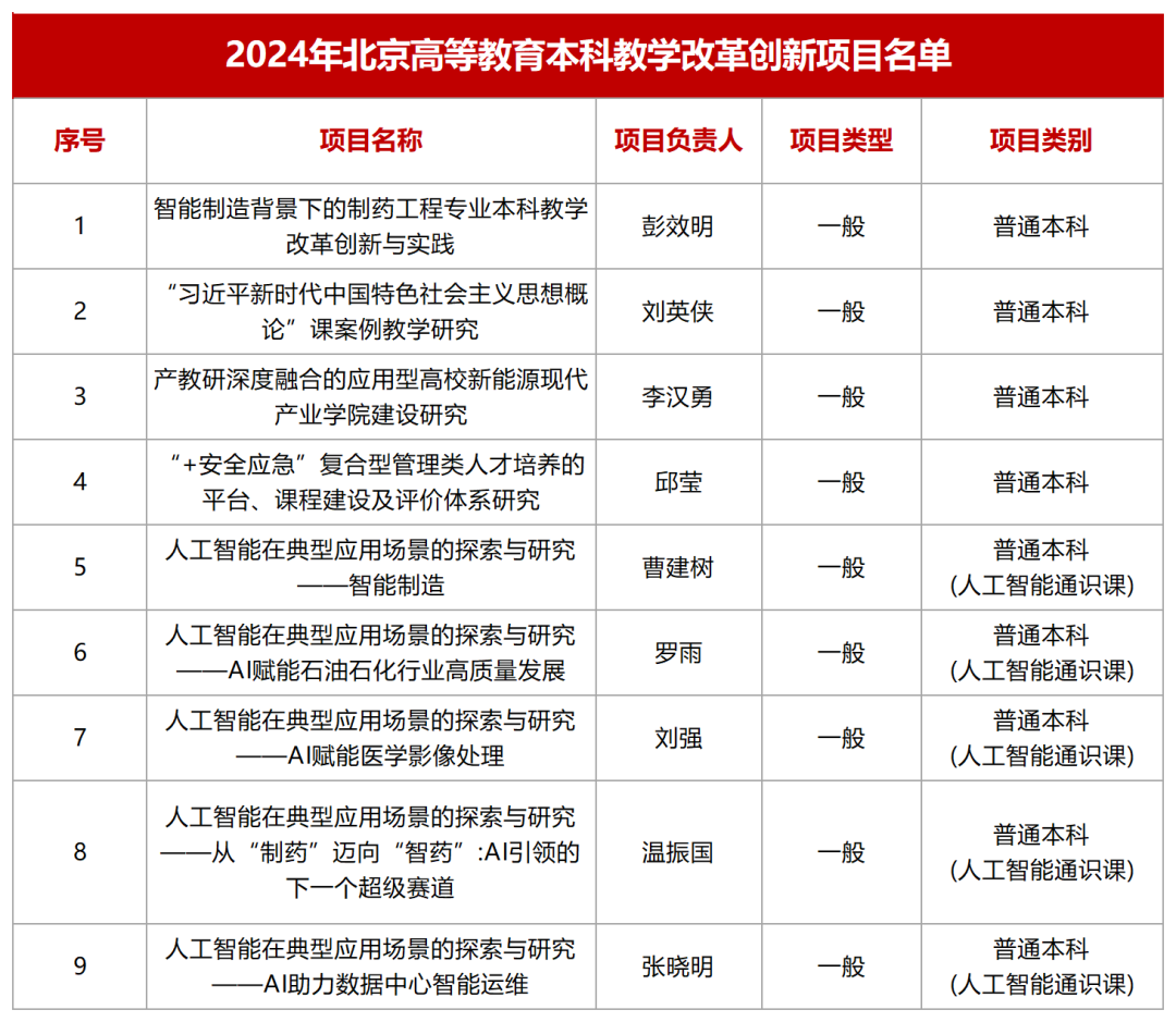 近日,北京市教委公布了2024年度北京高校本科教学项目建设评选结果,根据《北京市教育委员会关于公布2024年度北京市高等学校教学名师奖获奖名单的通知》(京教函〔2024〕529号)等文件,北京石油化工学院在北京市高等学校教学名师奖、北京高校优质本科课程、产学研深度育人平台、优秀育人团队等项目评选中捷报频传、成果丰硕,共29个项目获选。