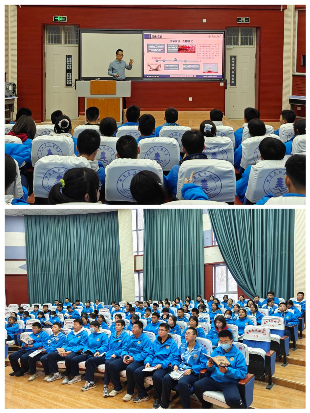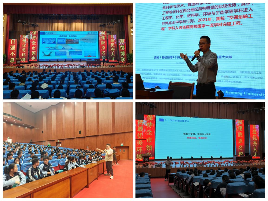 招生宣传工作组主动对接当地教育局、联系中学等部门,积极开展宣讲会与座谈走访工作,就我校基本情况、专业设置、生源选拔及就业情况等方面进行了解读宣讲。在宣讲过程中,机电工程学院辅导员吴东亮围绕兰州交通大学的历史使命与发展蓝图、人才培养与办学特色、专业学习与校园环境、就业情况等做了详细介绍,并就新高考模式下,学生的选科要求、志愿填报等做了说明,鼓励广大学子刻苦学习,积极报考兰州交通大学。学院优秀学生代表国家奖学金获得者胡瀚文结合自身学习和成长历程,从学习经验、实践经历、校园经历和科研经历等方面向同学们分享了丰富多彩的大学生活,生动地介绍了兰州交通大学的人才培养方案、专业特色优势以及丰富多彩的校园文化活动等,让在场的学生对大学生活有了更直观的了解,唤醒了同学们对于大学生活的憧憬与渴望。