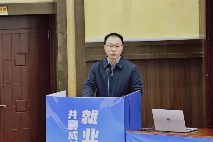 张樊在致辞中,对襄阳人社系统长期以来给予学校的关心和支持表示感谢。张樊指出,高校毕业生是党和国家宝贵的人才资源,促进大学生高质量充分就业,是新时代新征程就业工作的新定位、新使命。当前大学生就业形势总体稳定但依然严峻,党中央、国务院和各级政府近期连续出台了一揽子“稳就业”“促就业”的政策和措施,促进高校毕业生高质量充分就业。襄阳市人社系统始终坚持实施就业优先战略和就业优先政策,深入实施“智汇襄阳”计划,通过加强人才政策激励,搭建校企供需平台,组织校园双选活动,面向基层扩大岗位需求等系列服务举措,促进大学生留襄就业圆梦。