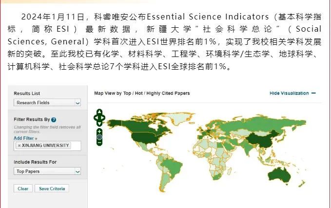 再获突破!新疆大学又一学科进入ESI全球排名前 1%