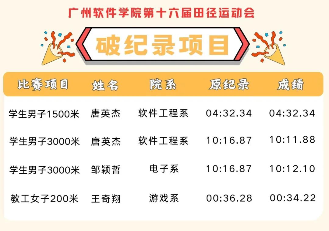 本届校运会共有3人3次打破2项运动会纪录,在学生男子3000米项目中,