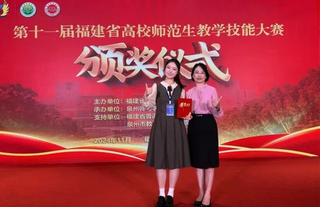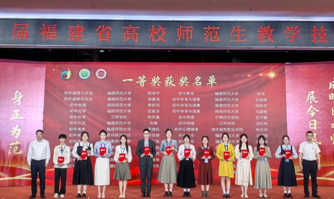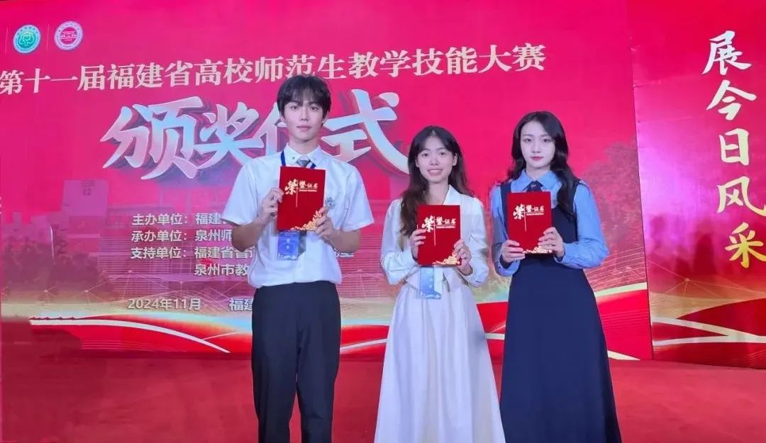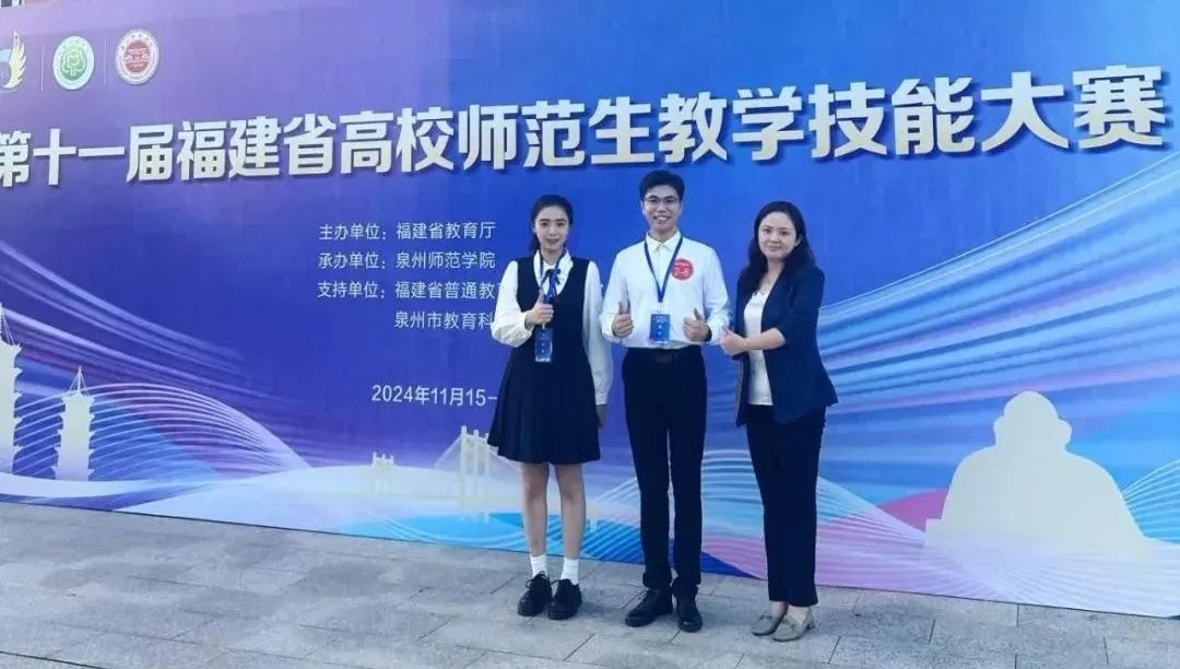 卓越教师,师大培养;丹桂飘香,捷报频传!11月15日至17日,我校学子在第十一届福建省高校师范生教学技能大赛上斩获佳绩,32名参赛师范生共斩获一等奖15项、二等奖9项、三等奖8项,9名指导教师获评“优秀指导教师”,我校荣获“优秀组织奖”。获奖数量、质量继续稳居省内院校的领先水平,彰显了我校师范教育的底色和特色,凸显新时代“卓越教师”培养的“师大经验”。据悉,本次大赛由福建省教育厅主办、泉州师范学院承办,来自全省35所高校的252名师范生参赛,共设置学前教育、小学、初中三个学段16个学科、18个组别,我校选手参加了所有学段学科的比赛。在前期备赛的过程中,我校各学院高度重视,配齐指导老师、系统组织演练、邀请专家点评指导,充分助力每一位参赛学生优化教学技能,提升师范素质。下面,就随小魔莉一览参赛学院师生的风采吧!教育学院