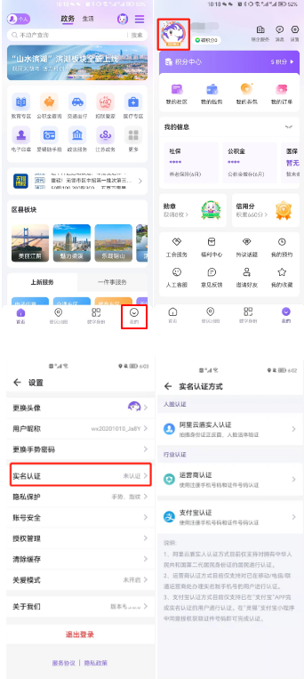 二、打开“灵锡”APP,使用常用手机号完成用户注册。同时通过“首页-我的-个人头像-设置-实名认证”操作路径,完成认证。
