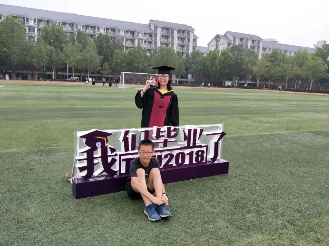 2018年,姐姐本科毕业时和温晨煜在图书馆合影
