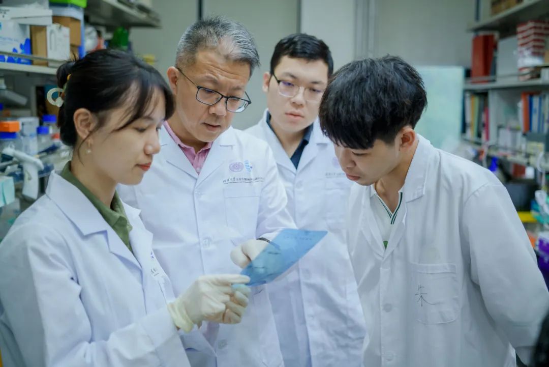 祁海教授(左二)指导学生实验