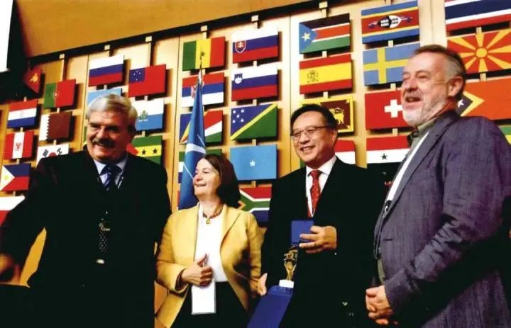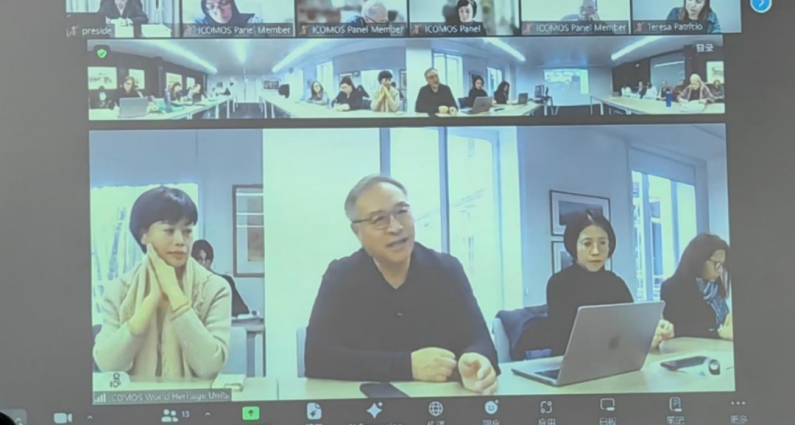 国家文物局文物古迹司副司长肖莉(左一)、吕舟(左二)和孙燕博士(右二)在巴黎ICOMOS总部完成现场答辩