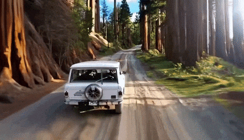 汽车穿过林间小路