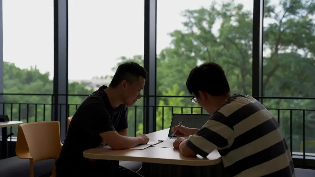 鲍凡(左一)和同学讨论问题