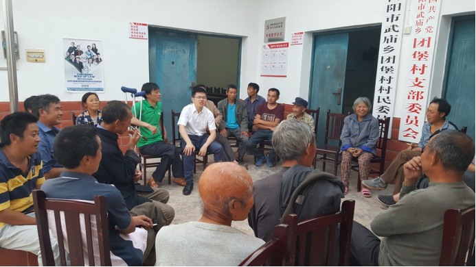 谈梦泽在贫困村组织村民召开“坝坝会”