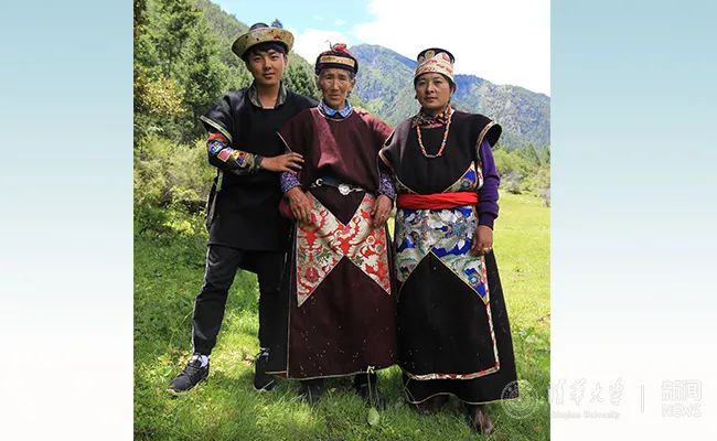 仁增顿珠(左)与姑姑(中)、妈妈(右)在西藏牧场的合影