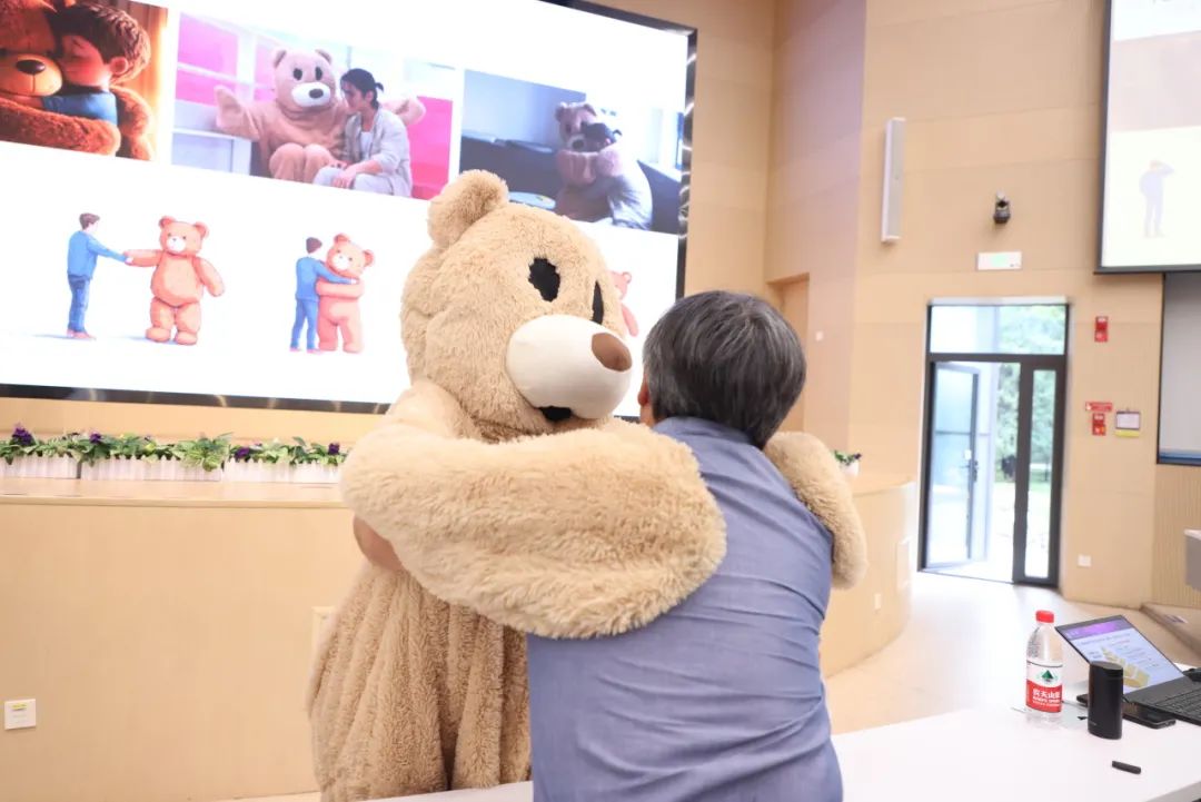 小组同学扮演的“抱抱熊”和在场师生互动