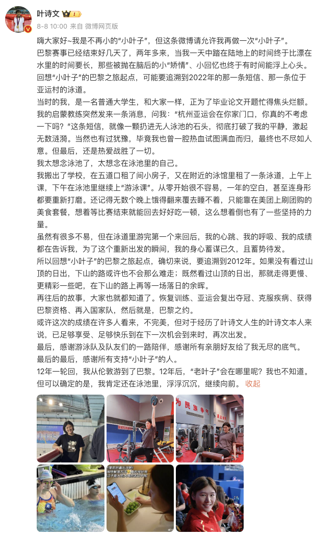 叶诗文在巴黎奥运会女子200米蛙泳决赛现场