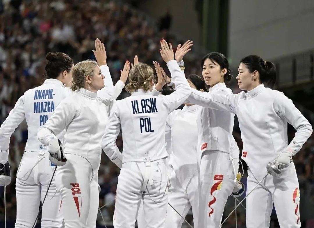 许诺在巴黎奥运会女子团体重剑铜牌战现场