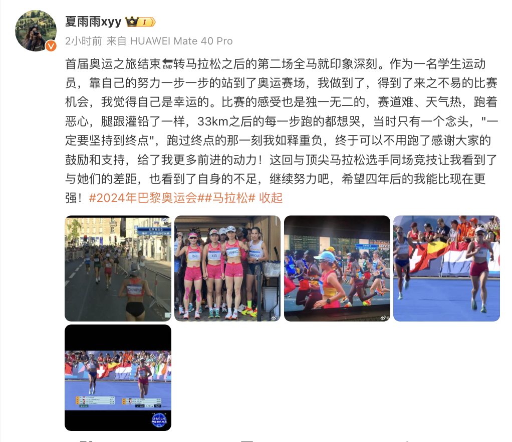 夏雨雨在巴黎奥运会女子马拉松决赛现场