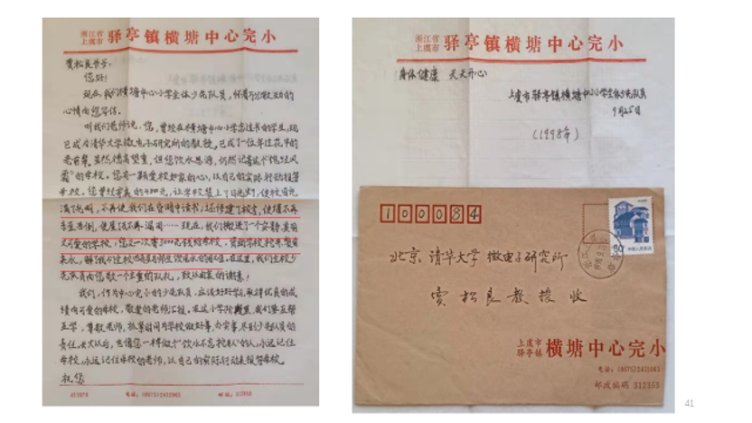 1998年9月,驿亭镇横塘小学学生的感谢信