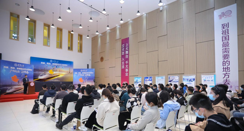 近年来,清华大学高度重视学生就业工作,不断创新资源供给方式,加大国防科工和西部地区就业资源供给,举办“国防科技人才月”与“西部人才月”,期间开展形式丰富的招聘活动,积极引导和支持毕业生到祖国最需要的地方建功立业。