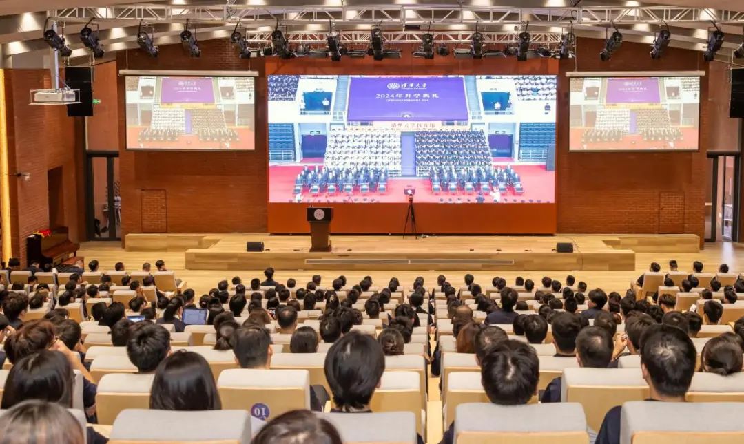 本次开学典礼采用线上线下结合的方式举行,线下设置综合体育馆主会场和新清华学堂、蒙民伟音乐厅等多个分会场,并通过雨课堂平台同步直播。相关部处、院系负责人,获奖