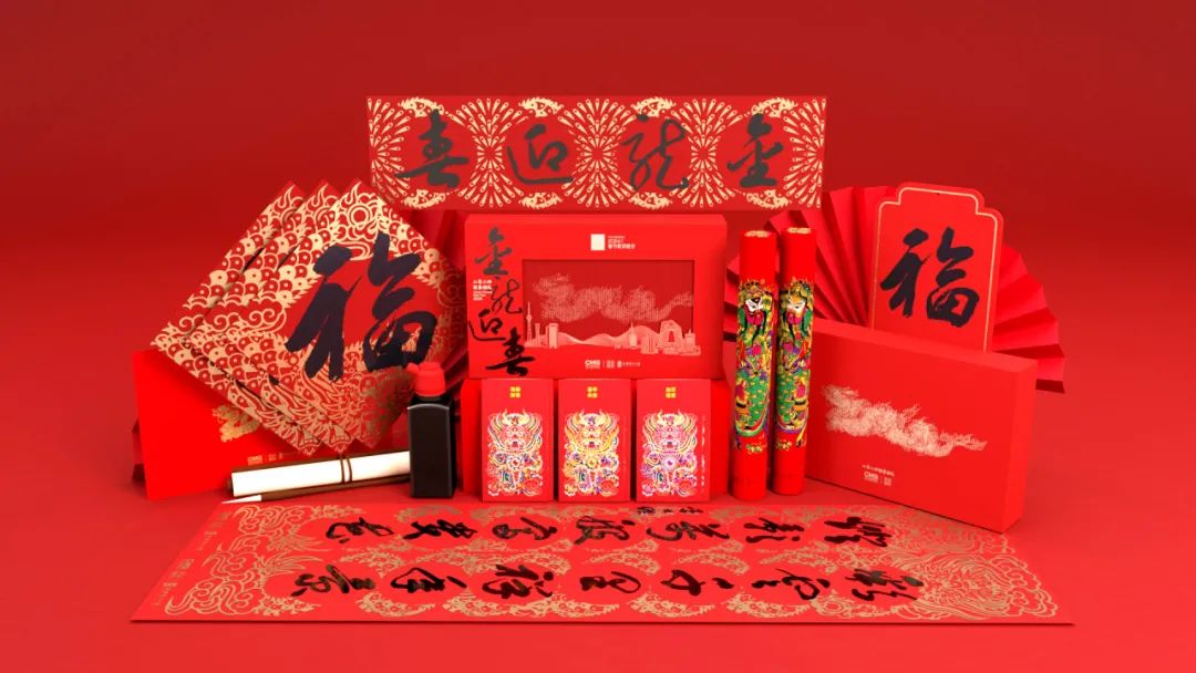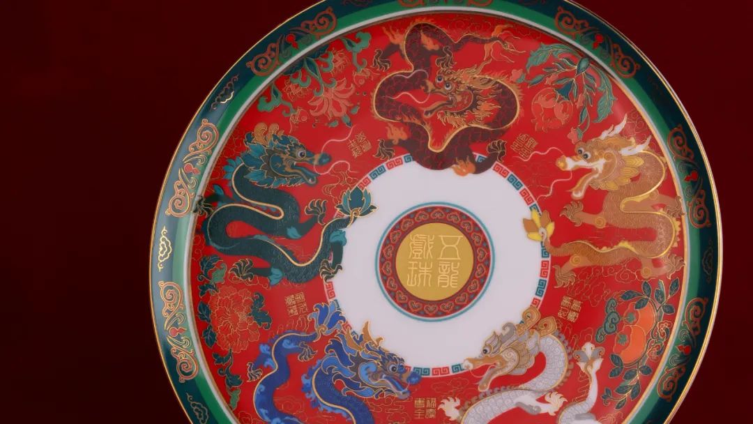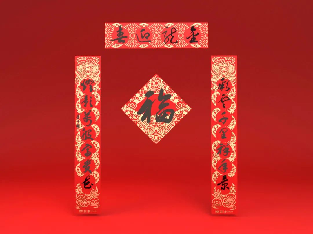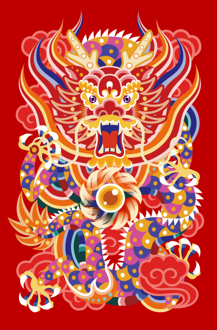 主画面取自中国民间吉祥装饰图案“双龙戏珠”
