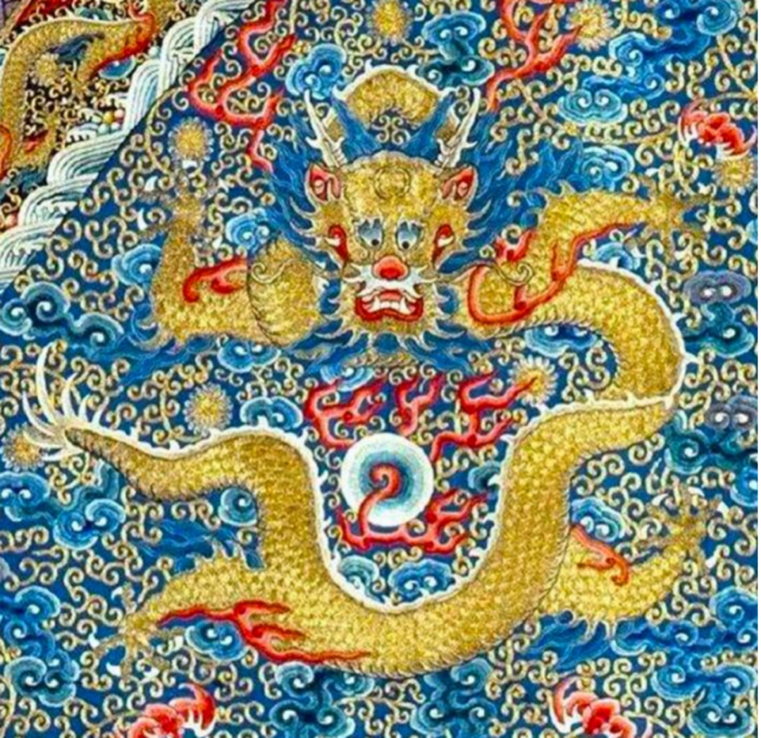 3.宝蓝缎彩绣平金云龙纹朝袍