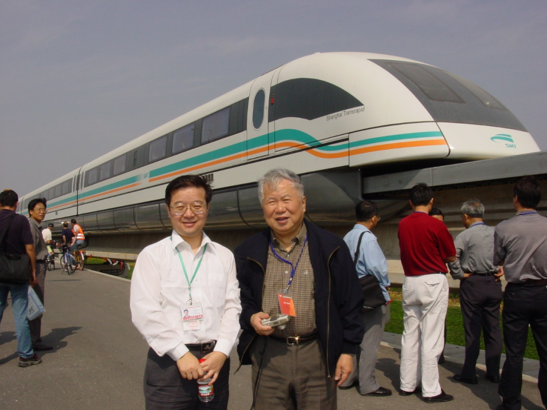 刘武君与导师吴良镛先生在上海磁浮列车前合影