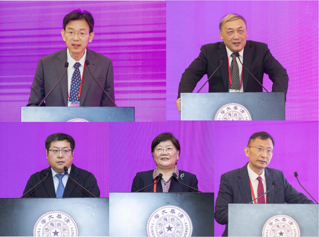 李路明、杨卫、贺泳江、郑晓静先后致辞,高华健介绍力学与工程交叉研究院情况(从左至右、从上至下)