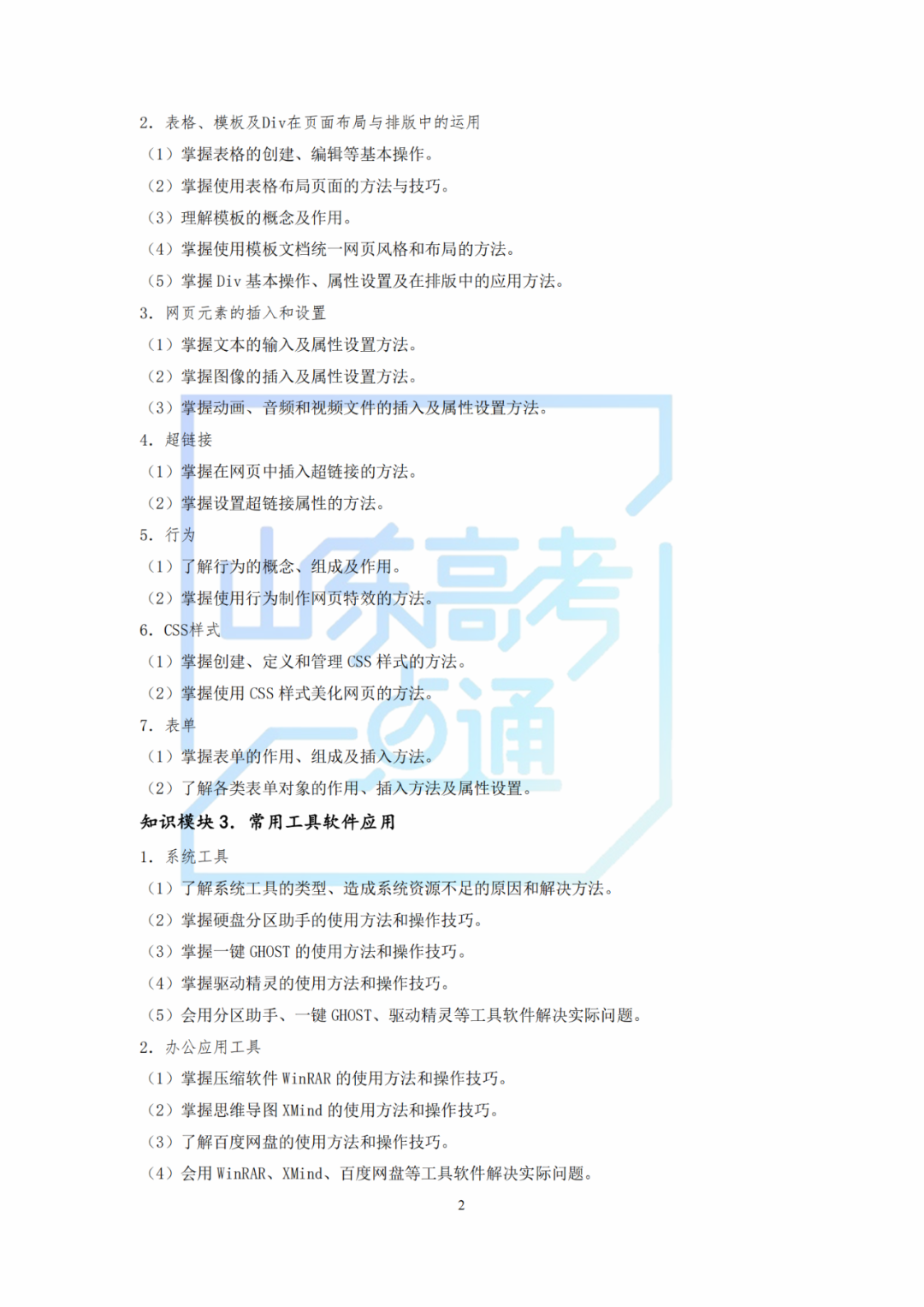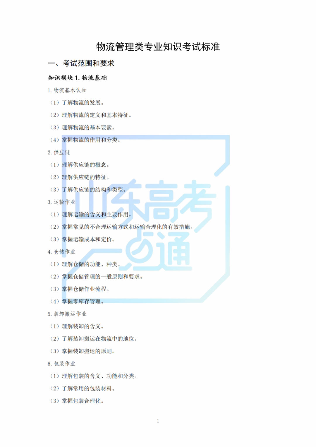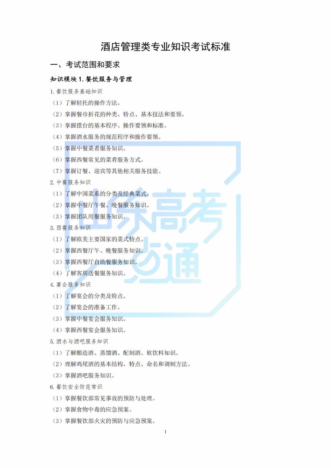 山东省春季高考统一考试招生专业类别考试标准(2025年版)