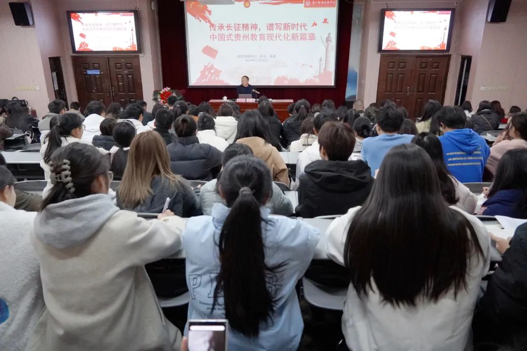 周游立足于推动中国式现代化的新时代背景,将教育强国的内涵特质与贵州教育现代化发展相结合,进一步讲解了谱写新时代中国式贵州教育现代化新篇章的重要意义。