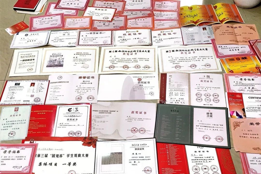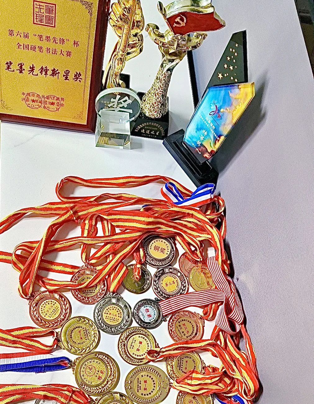 她一直都是一个全方面发展的女孩,无论是学习还是艺术方面都获得了许多优异的成绩。从小到现在累积获得大大小小的奖项共有100余项,大到国赛金奖,小到班级的个人荣誉。