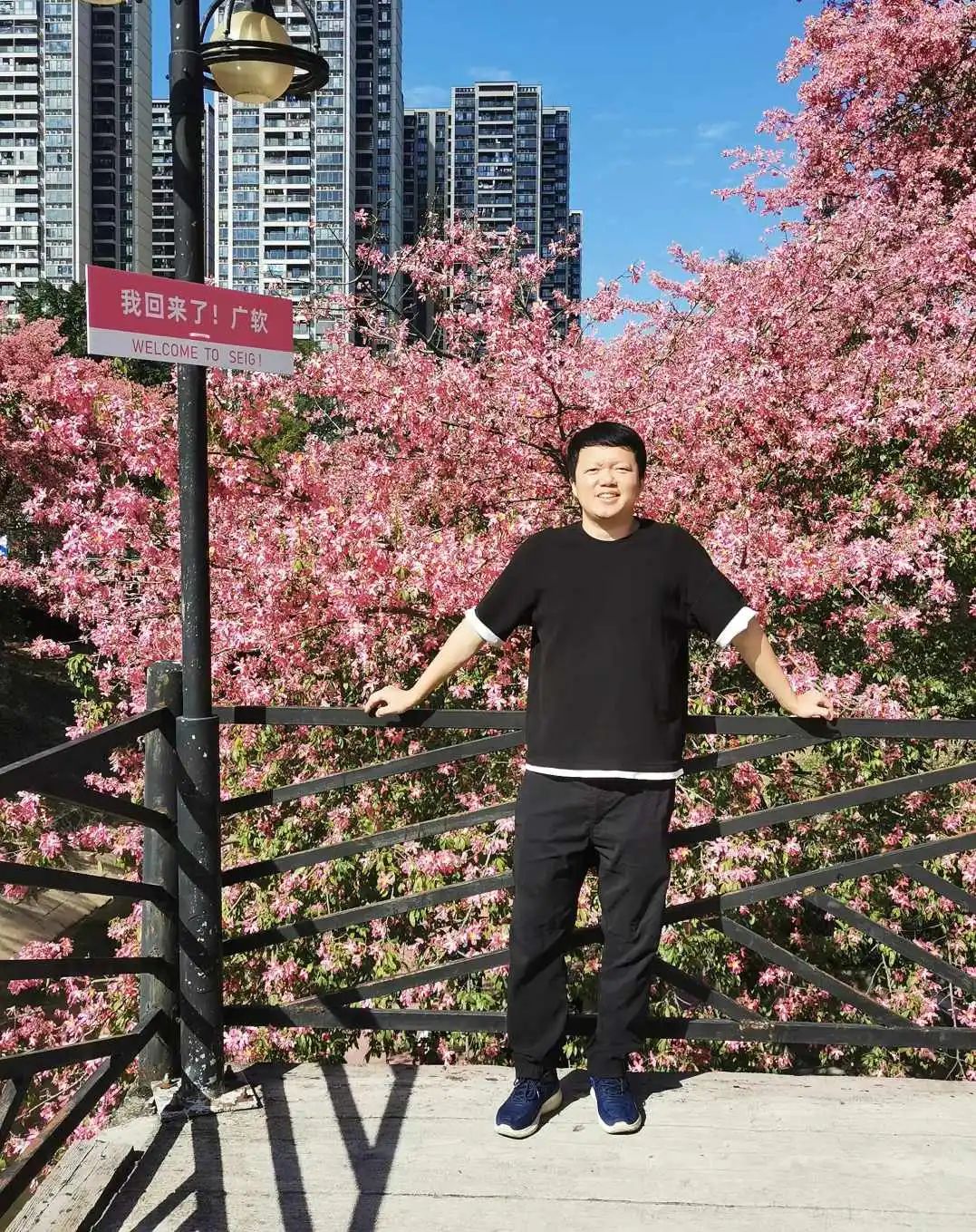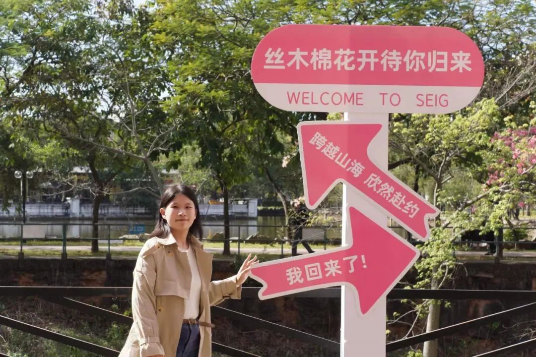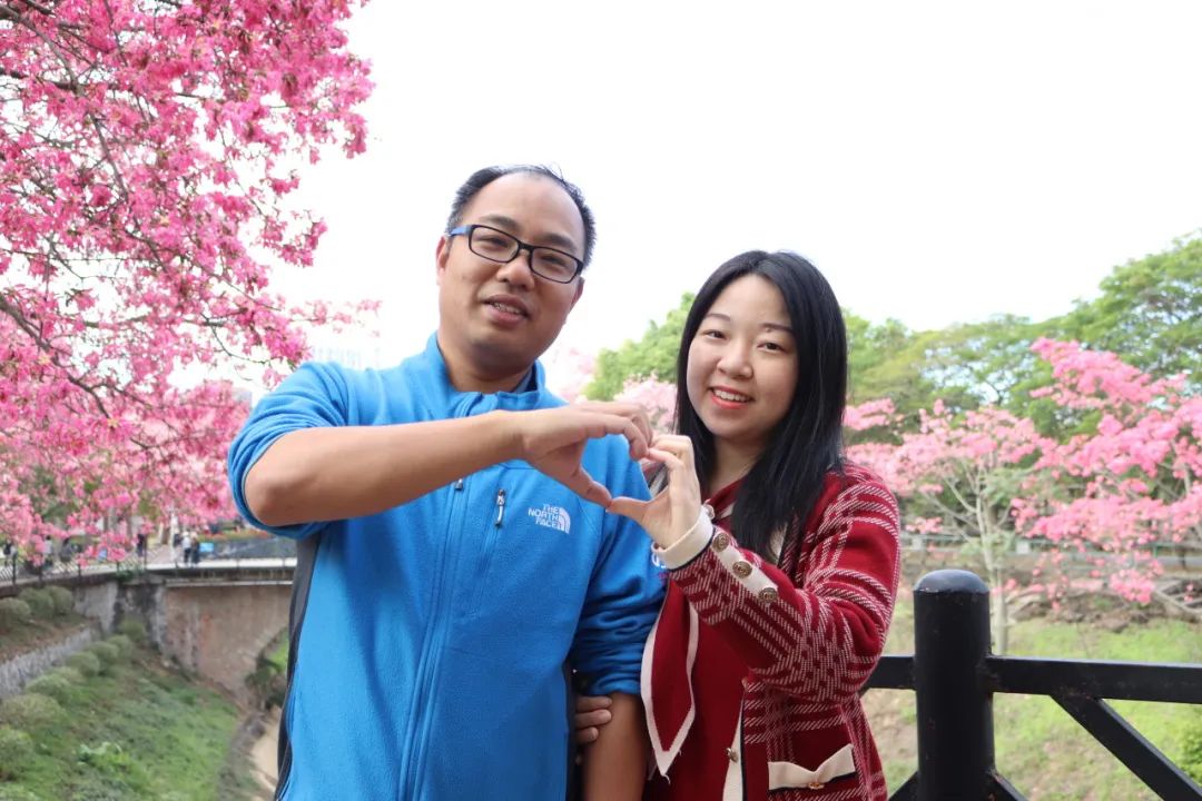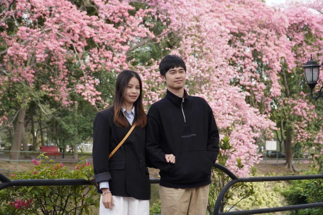 2016届工商管理(市场营销)的何思瑶和曾杰荣是大学同班同学,毕业后相爱并步入婚姻。在每年丝木棉花团锦簇、竞相开放的时节,二人相约广软,一同参与“丝木棉节”活动返校拜访,他们表示,“虽然外面很多地方都有种丝木棉,但还是觉得学校里面的最好看,每次回来都是天气最好的时候,随便怎么拍都好看。”