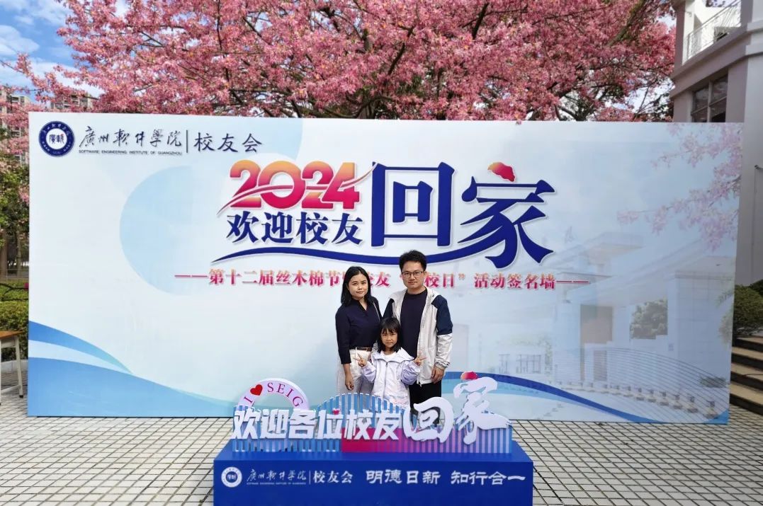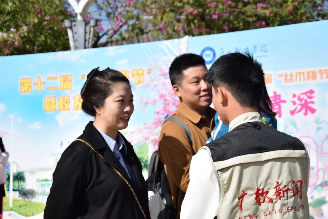 “重回校园感觉自己老了,就觉得物是人非,但青春还是留在这里的。”蔡滨灿和郭晓菁分别在2008年和2009年毕业于原管理系(现为数字经济与管理学院),他们在大学期间相识、相爱,从校园走向婚姻的殿堂。他们分享道,大学是一个全新的开始,是学生步入社会的过渡阶段,在校期间的社会实践活动,对大学生受益良多。作为学长学姐,蔡滨灿和郭晓菁想对广软的学弟学妹说,“社会非常精彩,比起学校的生活要更加精彩,勇敢地去闯出属于自己的一片天地吧!一切都有可能!”他们祝福学校越来越好,丝木棉能够遍地盛放。