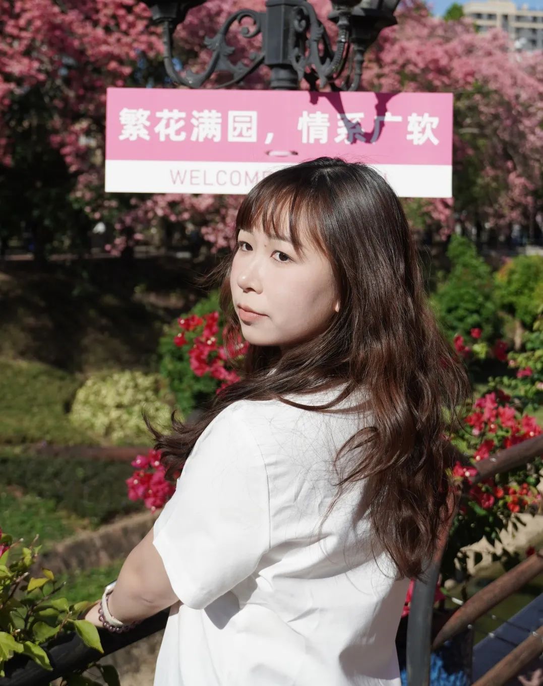 “很开心啊,因为十年前我和我先生的婚纱照是在这里拍的。现在回来,刚好十年了。” 在学校就读的日子里,2009届会计电算化专业的李丽华表示,最开心的时光就是每天在论坛上与同学聊天,相互分享开心的趣事。2009年毕业,相隔多年再次重返母校,尽管时光荏苒,岁月如梭,但十年前的美好景象仍令李丽华记忆犹新。当年和论坛认识的朋友一起回广软拍婚纱照,留下了最特别的回忆。