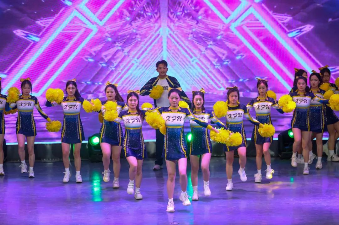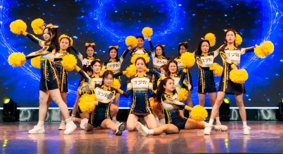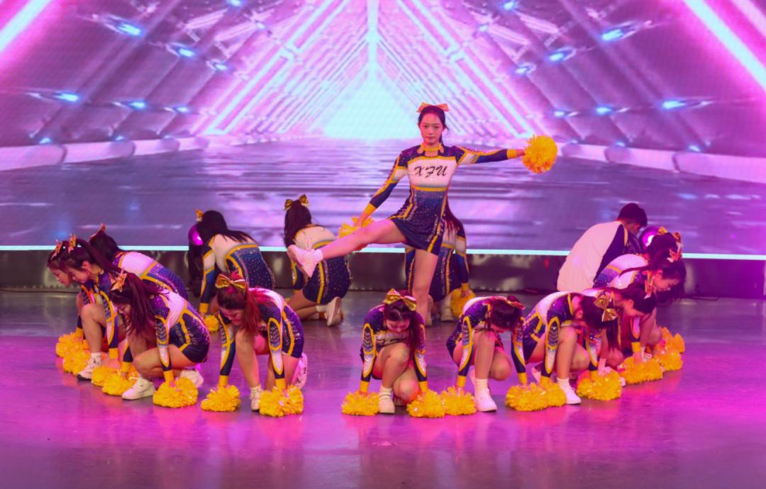 啦啦操队员们洋溢的笑容、饱满的精力仿佛一道道亮丽的风景线定格在每一位观众的心中每一次跳跃、旋转和翻腾都饱含着对生活的热情和对梦想的追逐激发每一个人内心深处那份勇敢追梦 积极向上的勇气