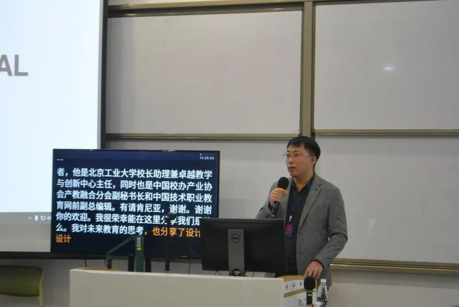 在主题演讲期间,北京工业大学耿丹学院校长助理、教学卓越与创新中心主任田野通过对耿丹学院的发展以及专业融合、专业创新改革等角度进行介绍,为参会人员介绍了在新时代、新背景下耿丹学院对于跨文化创新设计的探索以及不断创新,同时他也对Cumulus会议表达衷心感谢,他表示正是Cumulus会议上所提出的许多创新性探索想法,让耿丹学院在未来的教学探索以及改革中进行融合实现。
