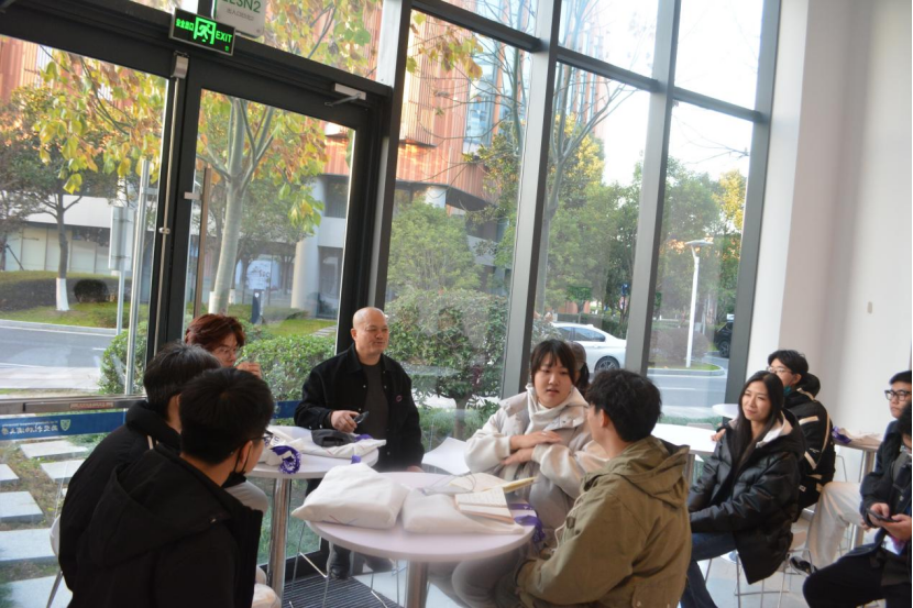 在参观后,国际设计学院院长林子杰与参会同学们开展了一场小型研讨会,每位同学就这次Cumulus会议所探究的跨文化融合设计与人工智能分享了自己的想法和收获。