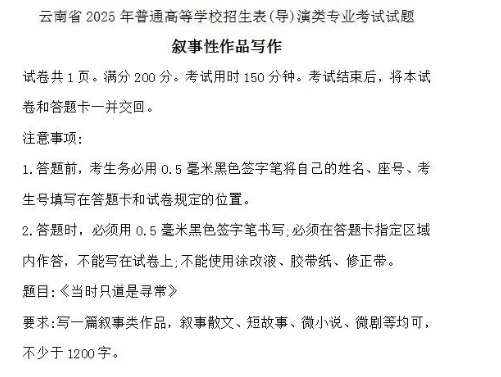 云南2025年表(导)演类统考考题(叙事性作品写作)