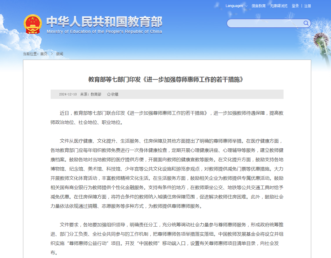 近日,教育部等七部门联合印发《进一步加强尊师惠师工作的若干措施》,进一步加强教师待遇保障,提高教师政治地位、社会地位、职业地位。一起了解!